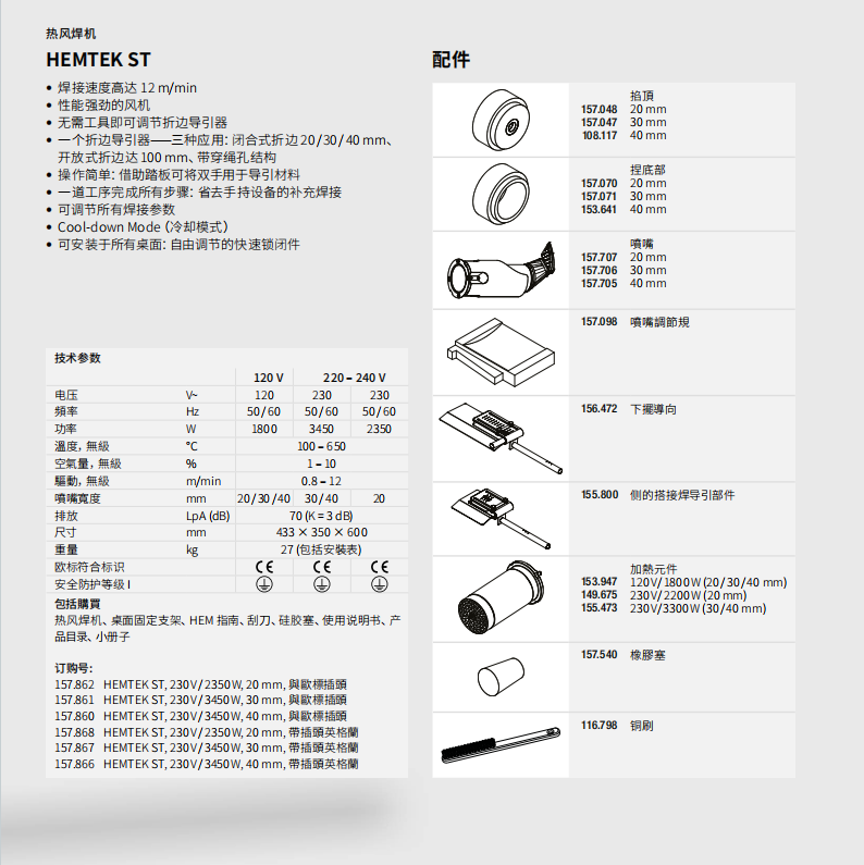 特点:焊接速度高达12 m/min;风机性能强劲,操作简单;无需工具即可调节折边导引器;焊接支持闭合式折边、开放式折边、带穿绳孔结构;可调节所有焊接参数,自由调节快速锁闭件;